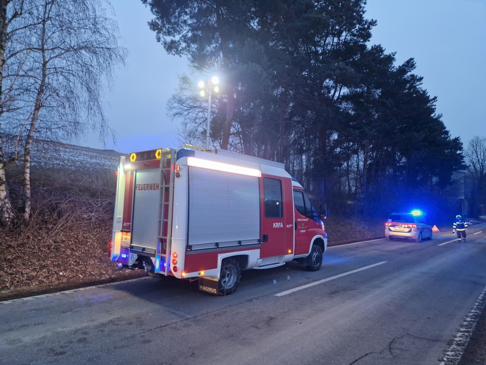 Die bereits fünfte Alarmierung in den ersten drei Wochen des Jahres 2026 führte uns auf die L386 Richtung Oberdorf. Hierzu wurden wir seitens der LSZ-Burgenland mittels stillen Alarms (Pager+BlaulichtSMS) zu einer Fahrzeugbergung mit dem Stichwort „Polizei vor Ort“ alarmiert.