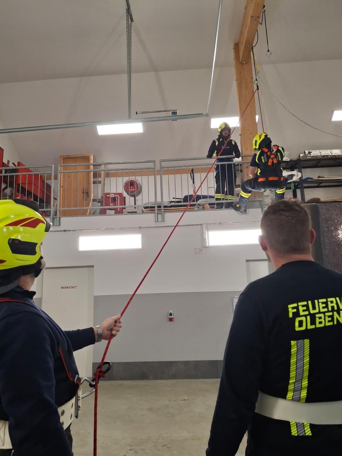 Nach einer Einführung in die vorhandenen Ausrüstungsgegenstände und einer kleinen Demonstration der geplanten Übungen ging es für die Teilnehmer auch gleich richtig los. Aus luftigen Höhen wurden zuerst das passive Abseilen sowie die Sicherung von Kamerad*innen beübt.