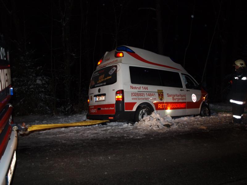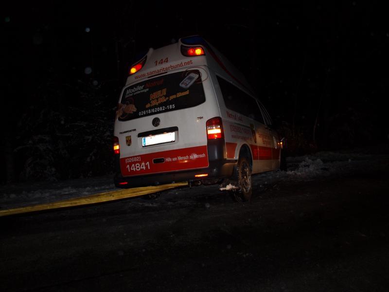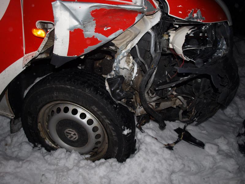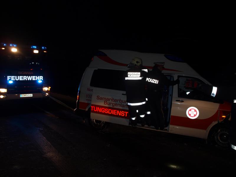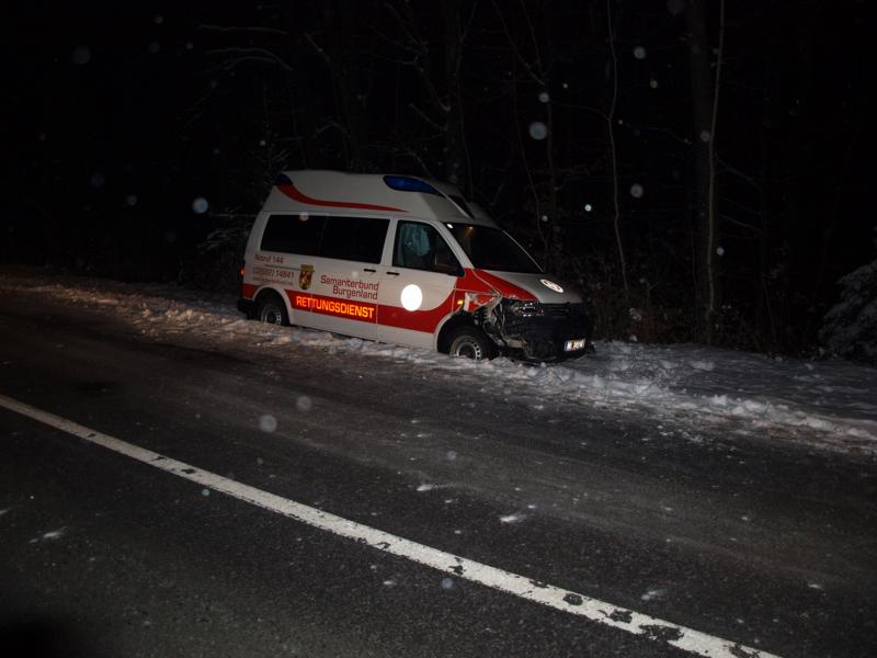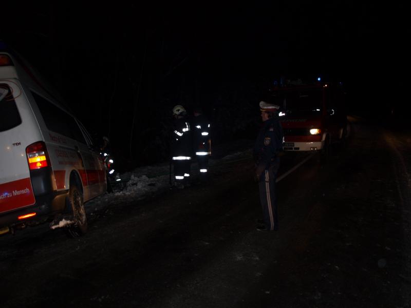 Ein Rettungsfahrzeug des Arbeitersamariterbundes kam auf die Gegenfahrbahn und kollidierte mit einem entgegenkommenden PKW. Durch den Aufprall kamen beide Fahrzeuge ins Schleudern und schließlich im Straßengraben zu liegen.
