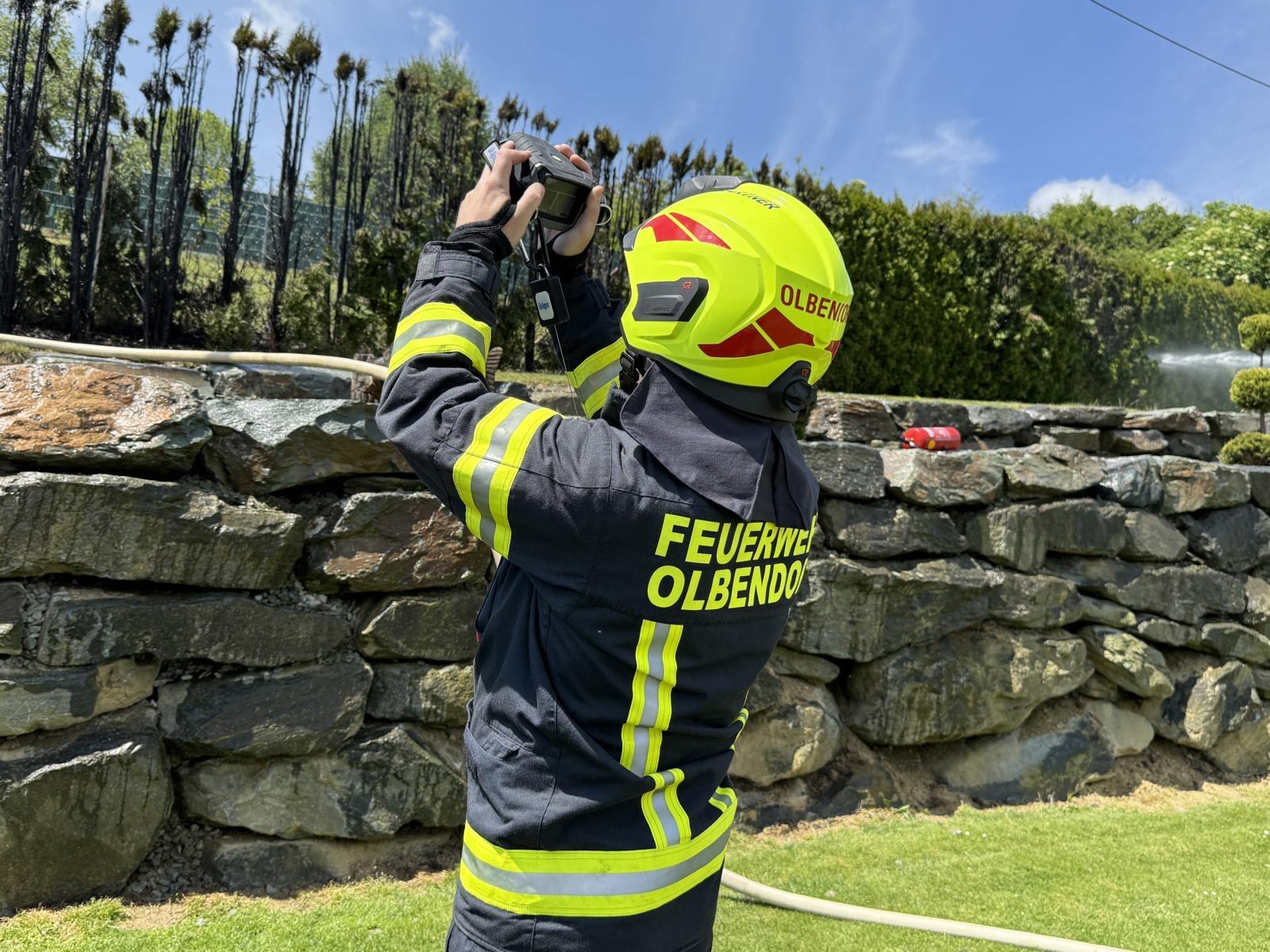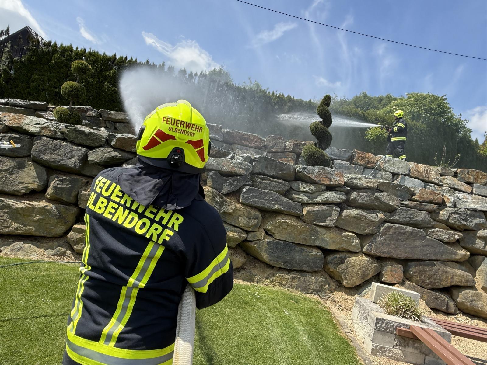 Vor Ort angekommen wurde festgestellt, dass der Brand vom Hausbesitzer bereits mittels Gartenschlauchs und Feuerlöscher in Schach gehalten werden konnte. Sofort wurde über die HD-Haspeln beider Tanklöschfahrzeuge ein Erstangriff gestartet und in weiterer Folge von zwei C-Rohren unterstützt. Nach wenigen Minuten konnte der Brand gelöscht und die Einsatzstelle mit der Wärmebildkamera auf letzte Glutnester abgesucht werden.