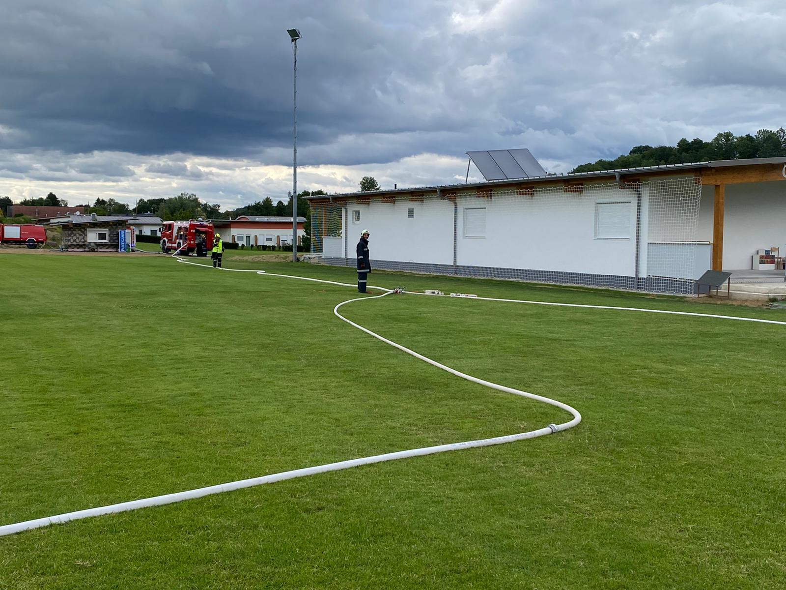 Nachdem das neu Kabinengebäude des Sportvereins Olbendorf zum 1. Mal beübt wurde, konnten wertvolle Erkenntnisse für einen möglichen Ernstfall erlangt werden.