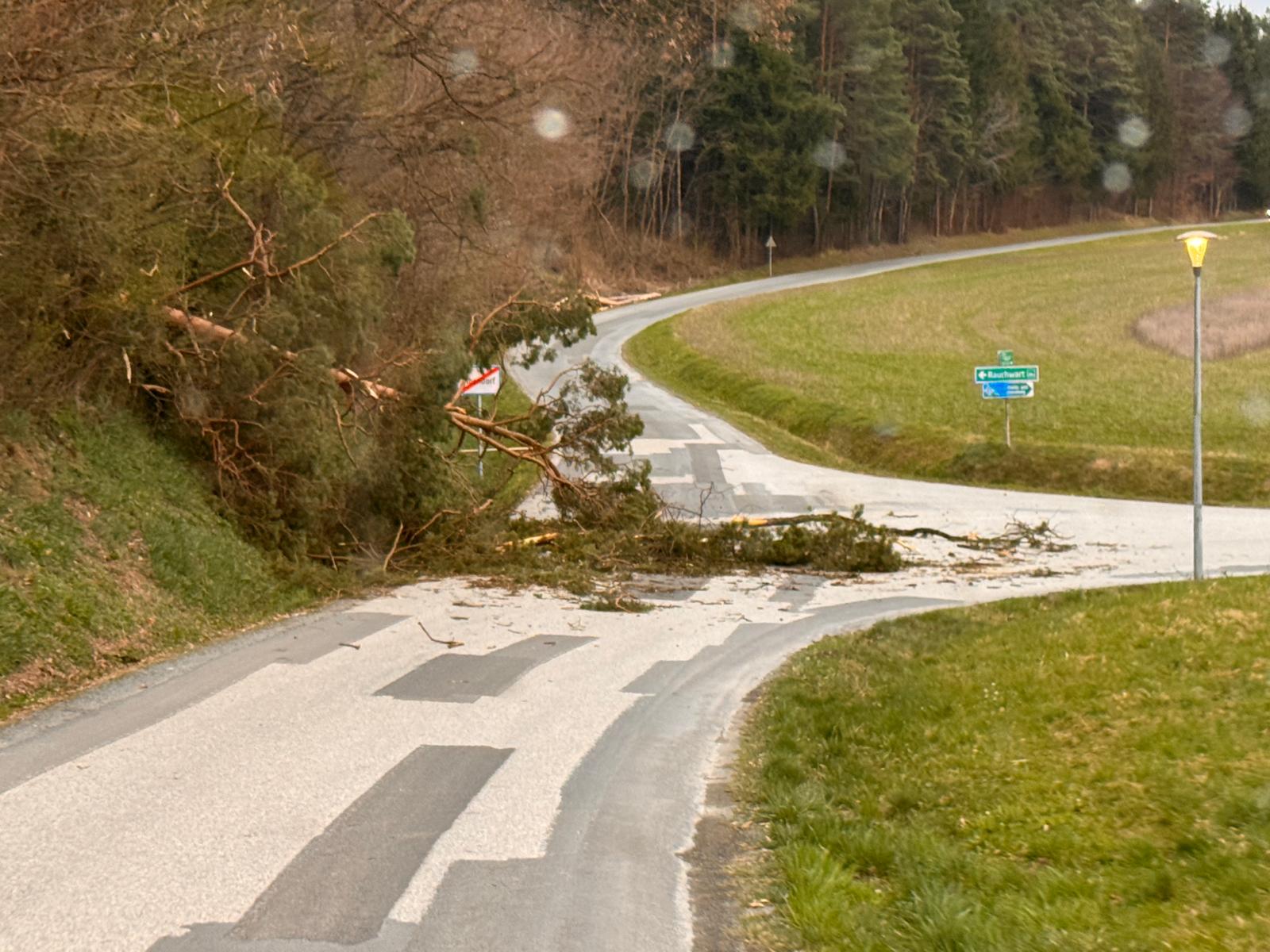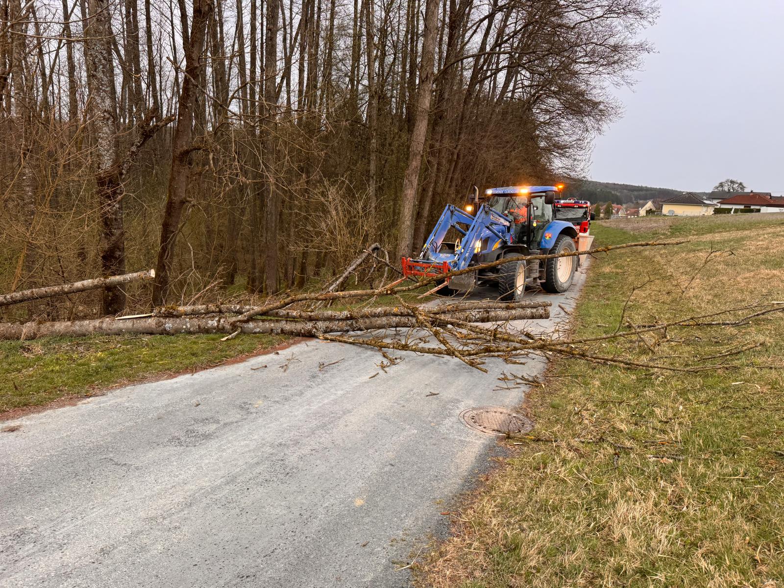 Noch während des ersten Einsatzes wurden wir über weitere Einsatzadressen im Ortsgebiet informiert und teilten uns mit den Fahrzeugen für eine möglichst rasche und effektive Abarbeitung auf. Nach ca. 1,5 h konnte die Einsatzbereitschaft wiederhergestellt werden. Wir bedanken uns beim Team vom Bauhof, welches uns mit den Traktoren bei der Entfernung und beim Abtransport der Bäume und Äste unterstützte.